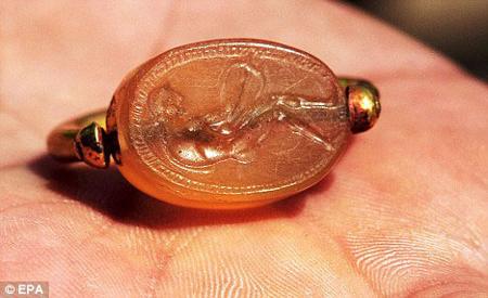 这对耳环是保加利亚考古学家在距离首都索非亚280公里远的库夏尔村的一处色雷斯人坟墓中挖掘出的,一同出土的还有一个环形饰品和一些陪葬品。考古人员认为,这些物品下葬的年代约为公元前5世纪。
